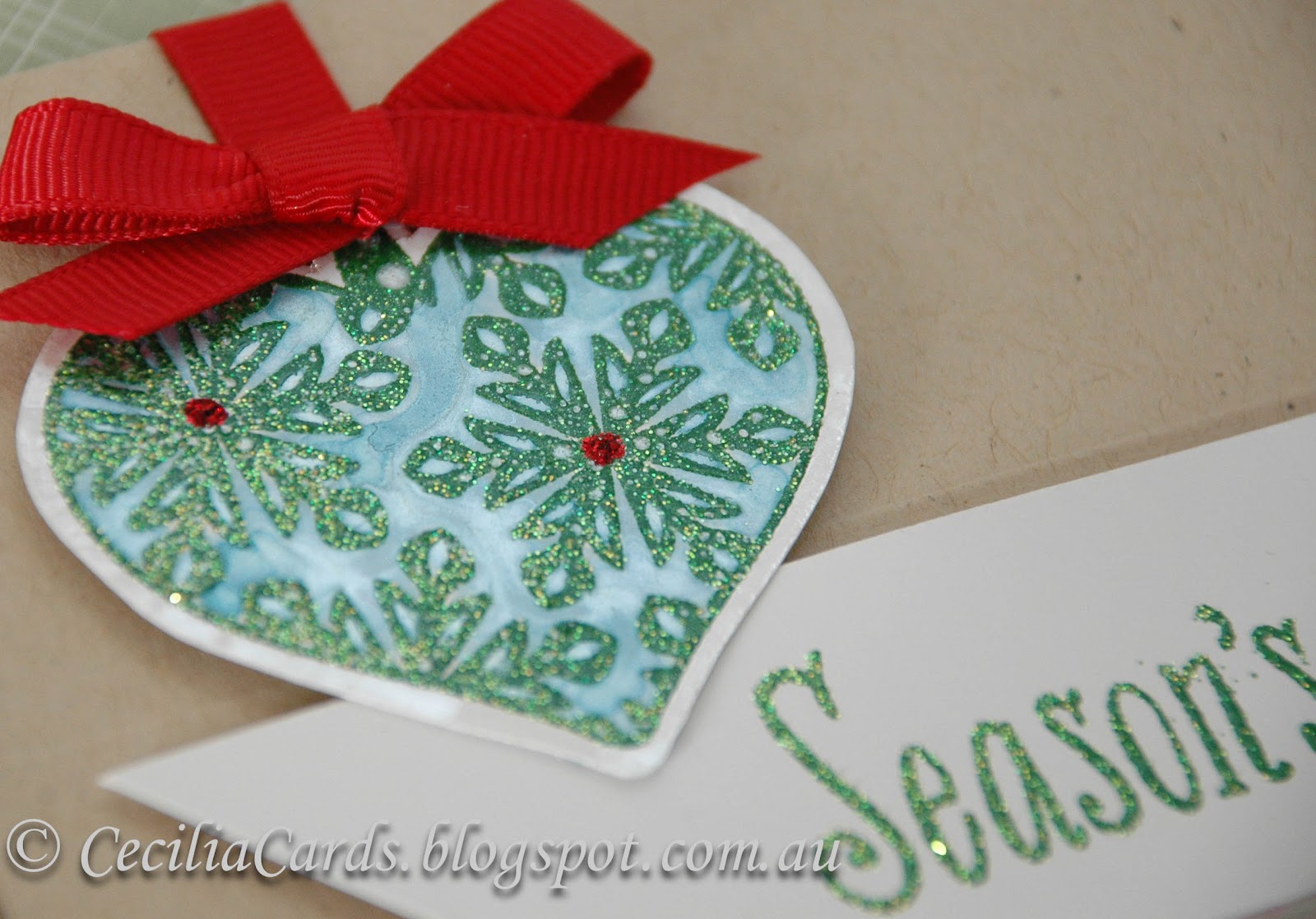 photo for inspiration. This had me stumped for a while as I didn't know where to start. I recently purchased some Christmas stamps and the colours were light blue, green and red which were perfect colours for Christmas. I stamped my bauble and sentiment with Versamark and embossed with green glitter (my recent purchase at Paperific Expo). The bauble was then coloured with Broken China distress marker and sprayed with Perfect Pearls. This gave a really interesting dimension to the bauble (I will be making lots of baubles this way for all my Christmas cards)! I finished off the card with a bit of scoring and a pretty red ribbon and red stickles on the bauble (it was still wet when the photo was taken!). I'm submitting this card to the Simon Says Stamp Anything Goes challenge and the Moxie Fab World Gallon/Quart/Pint challenge - Gallon colour is blue, Quart colour is green and the Pint colour is red. A Blog Named Hero just announced their next challenge - Embossing, perfect! Thanks for dropping by!